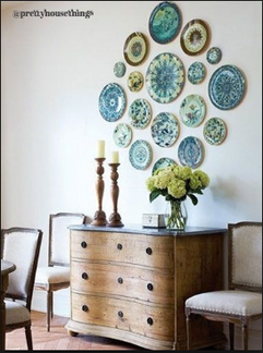Utilizing a common thread in a gallery wall, not only adds a modern fell but it creates a thoughtful and cohesive viewpoint. Check out the dining rooms below. Love the wall with the vintage plates!